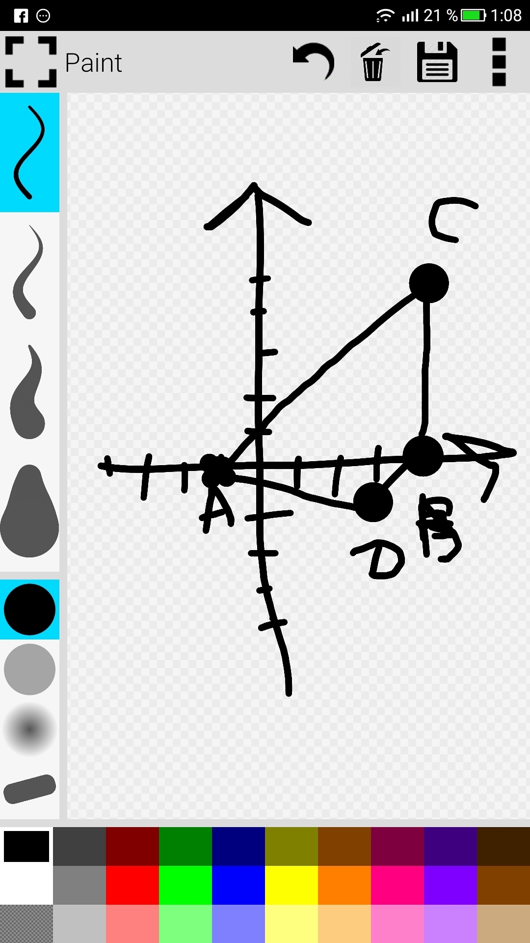 В чем проблема. Начерти координатные оси, отметь точки, соедини их и посмотри