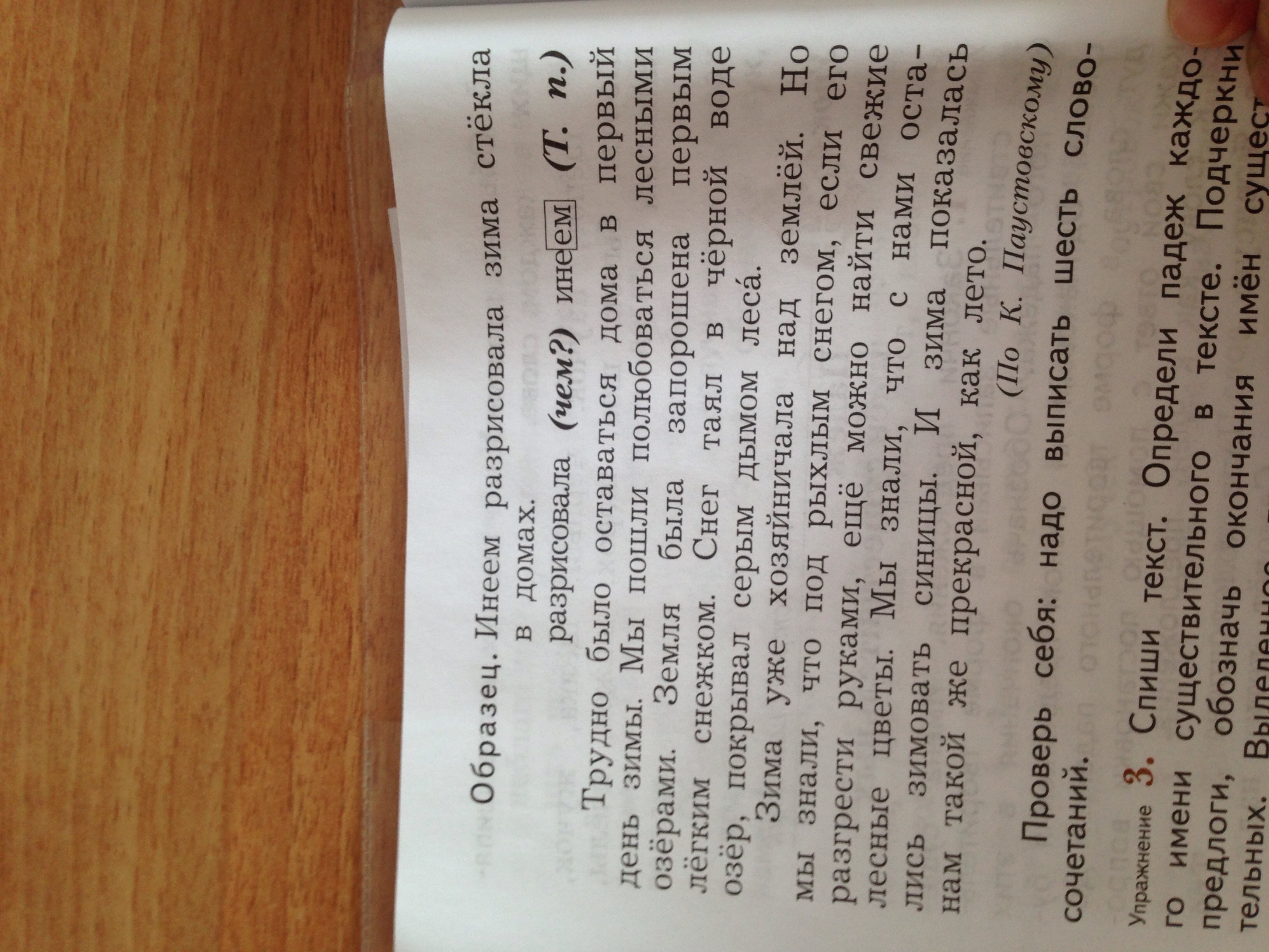Прочитай текст. Найди имена существительные в творительном падеже. Выпиши сочетания слов с существительными в творительном падеже. Обозначь в них окончания.