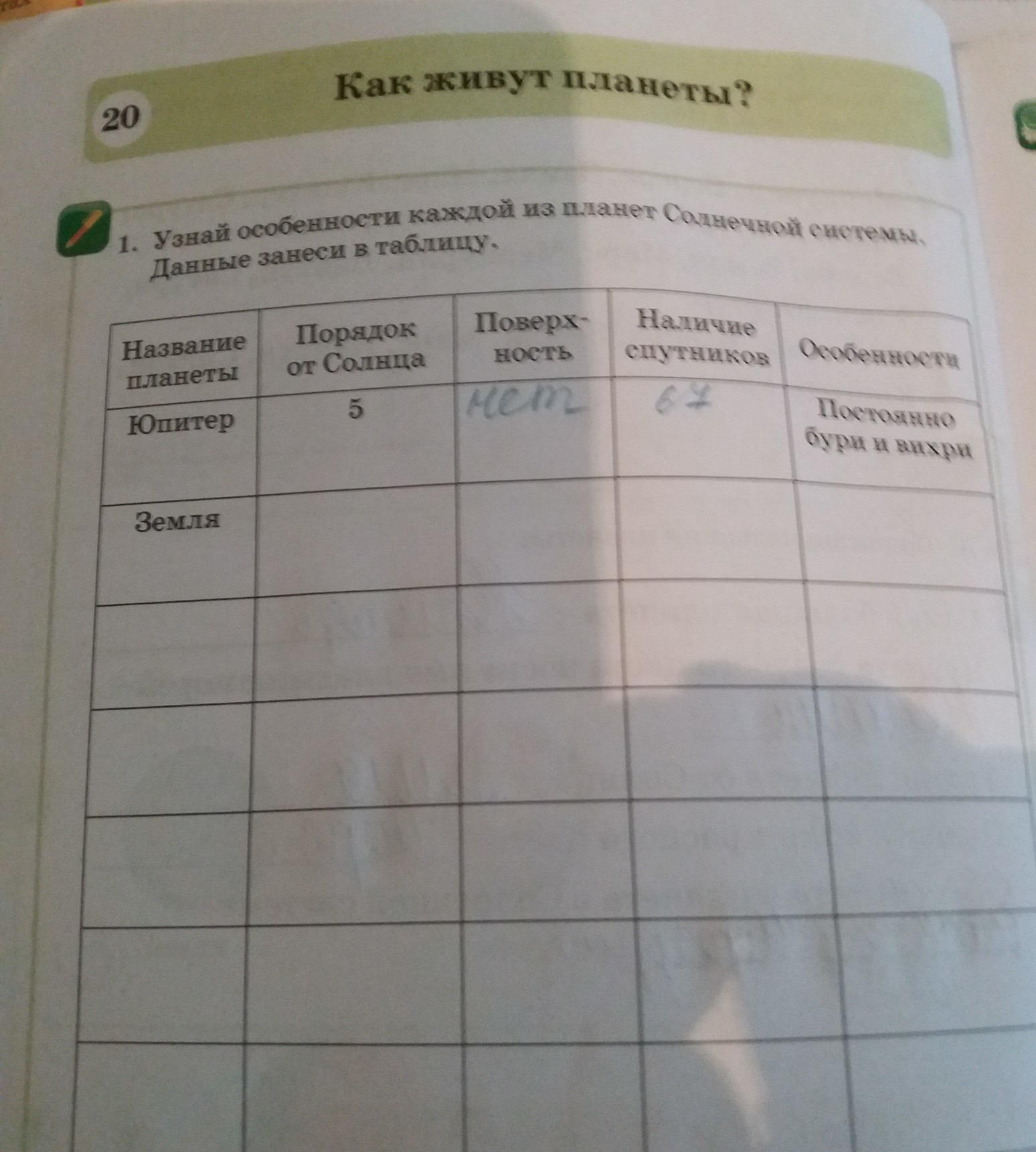 Земля: 3; да, есть; 1 ( луна); единственная планета в солнечной системе, на которой есть жизнь.;