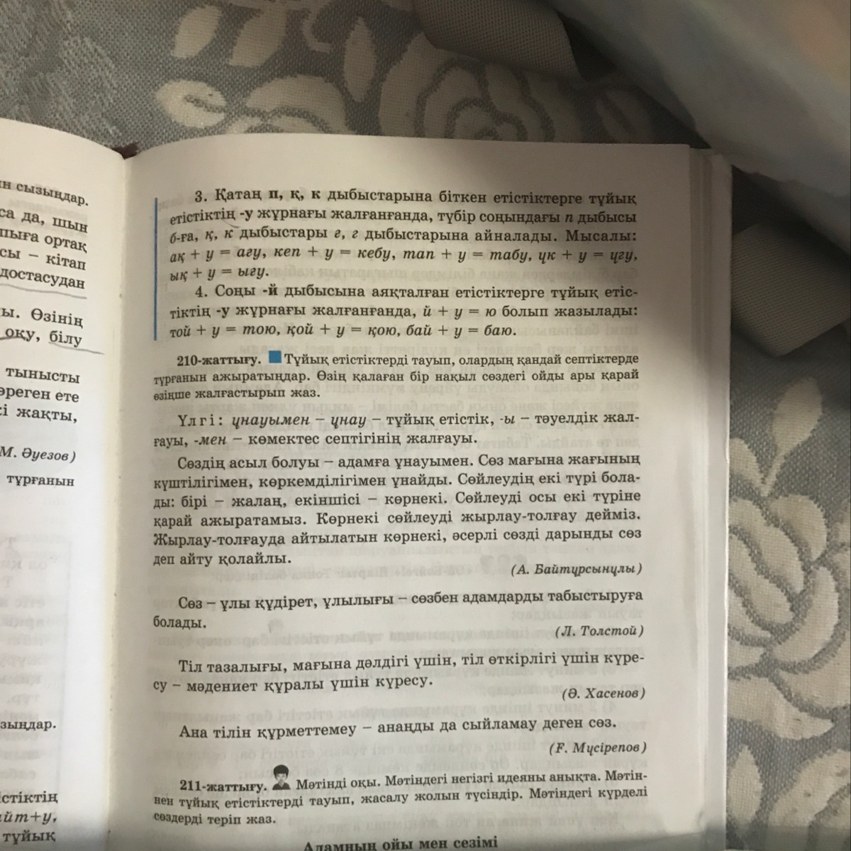Сөйлеуді - сөйлеу - тұйық етістік - табыс септігінің жалғауы.