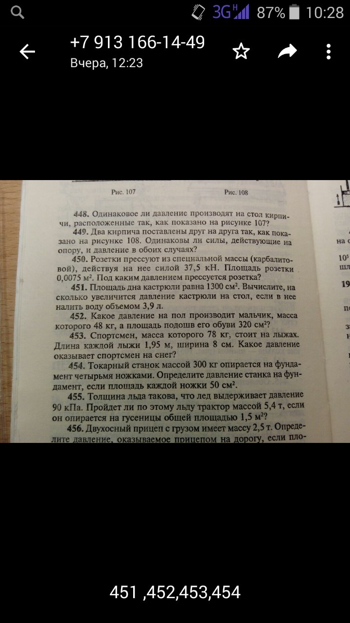 452) p=F/S=m*g/S=48*10/0.032=15000 Па (15 кПа)
