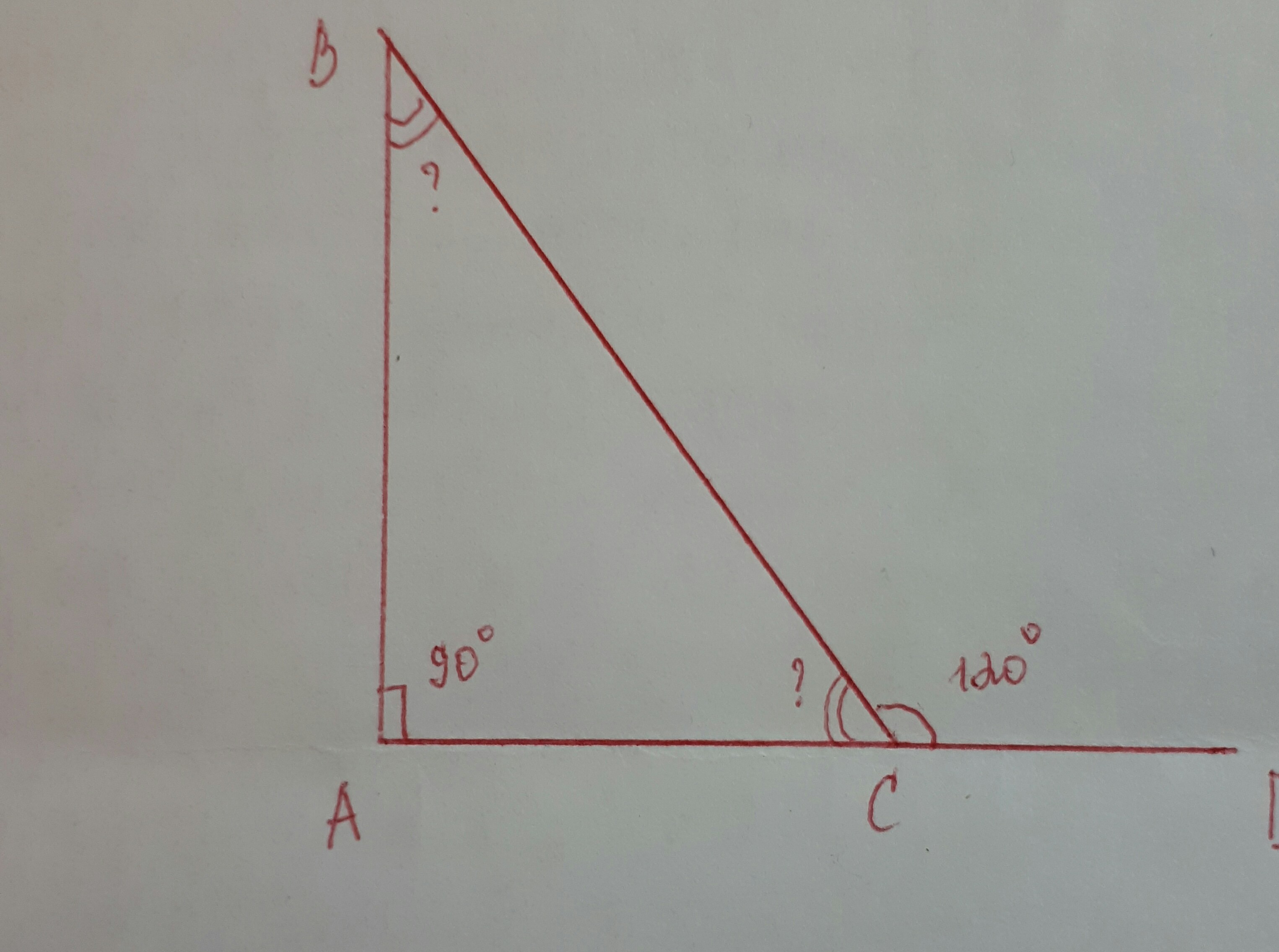 Один из внешних углов прямоугольного треугольника равен 120 градусов.Найдите острые углы этого треугольника.можно пожалуйсто с чертежом и решением!?