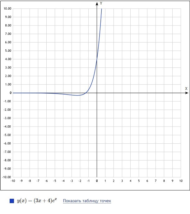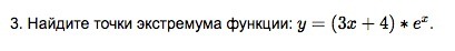 y`=3e^x+(3x+4)e^x=e^x(3+3x+4)=e^x(3x+7)=0 при x=-7/3