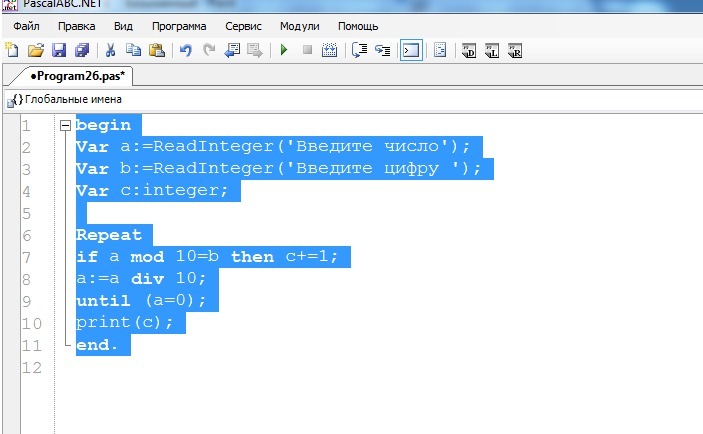 beginVar a:=ReadInteger('Введите число');Var b:=ReadInteger('Введите цифру ');Var c:integer;