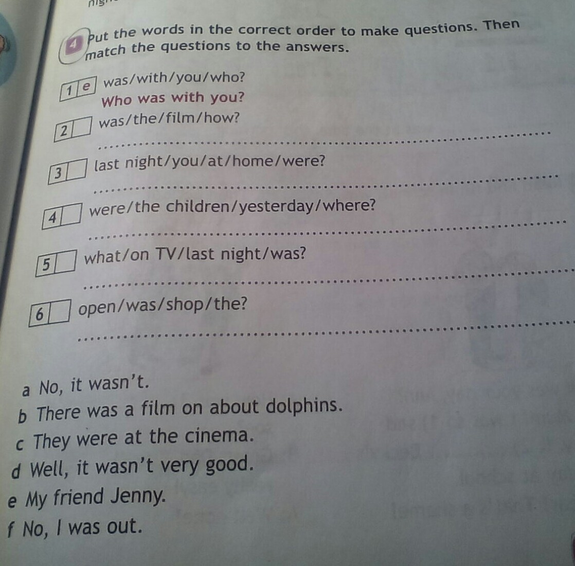 b - There was a film on about dolphins. - Шел фильм про дельфинов.