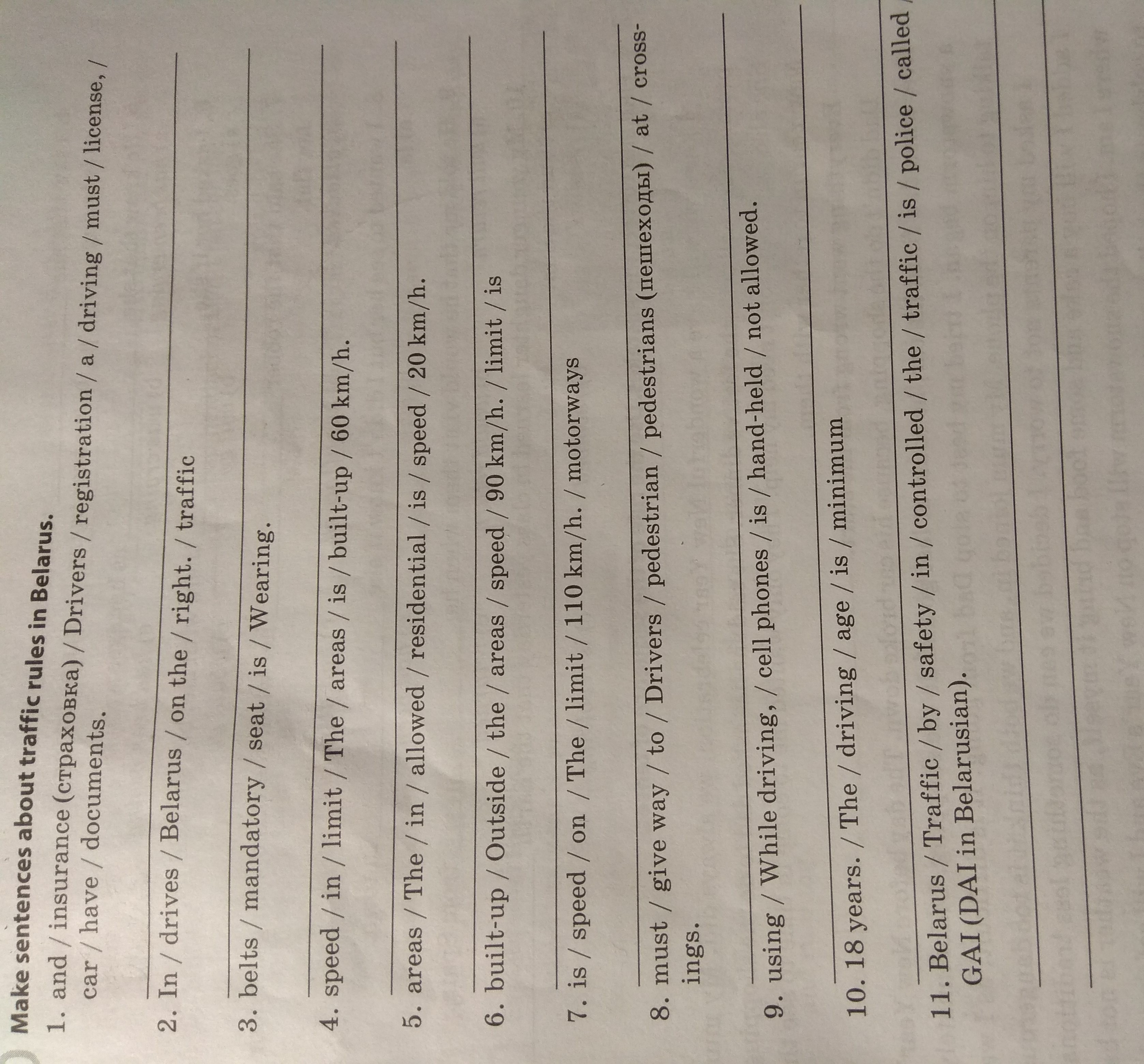 11. Traffic safety in Belarus is controlled by the traffic police called GAI