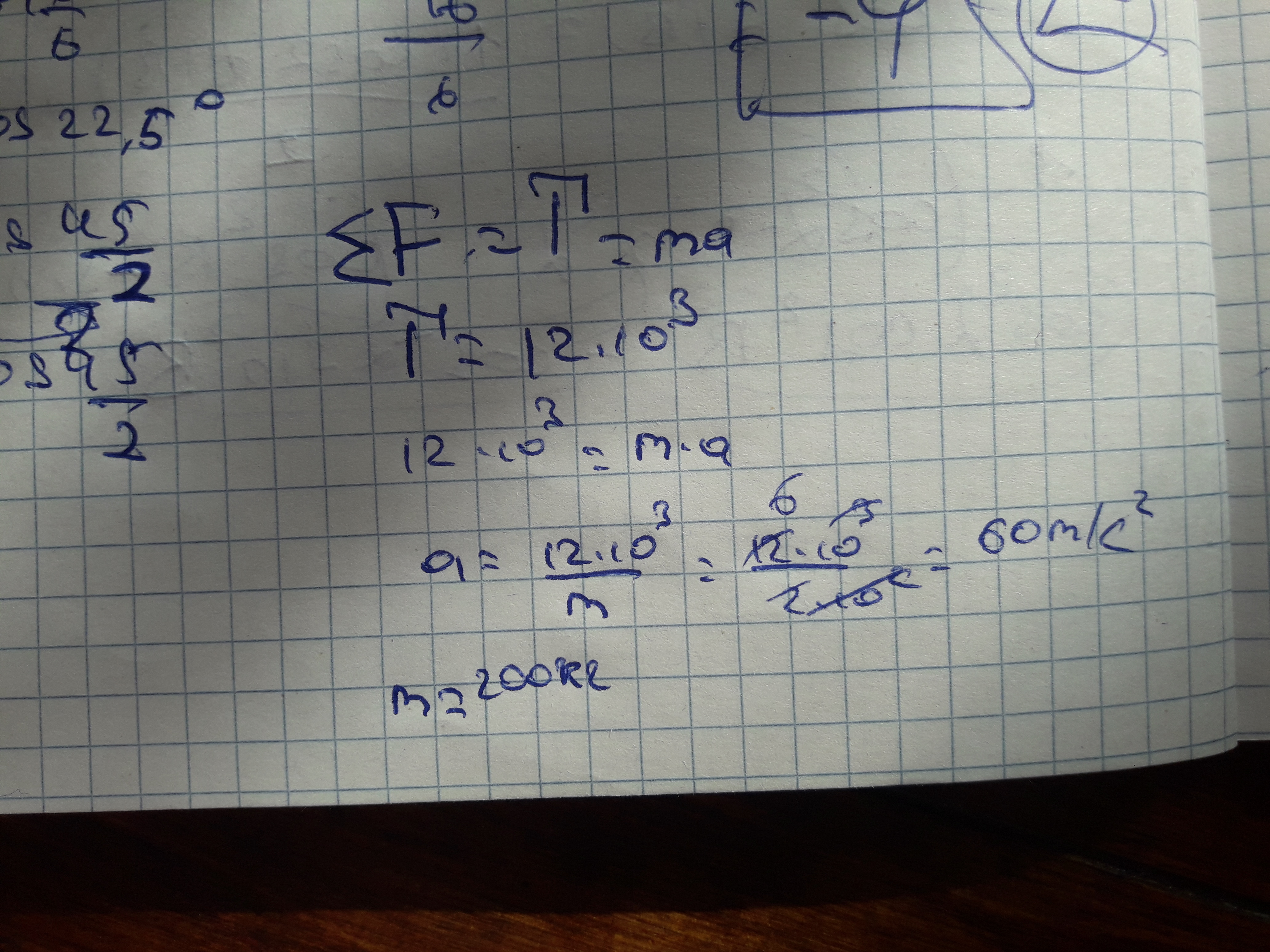 Ящик с грузом массой 200 кг опускают. Равноускоренное в шахту вертикально при силе натяжения троса 12 KH. Определите ускорение с которым движется груз.
