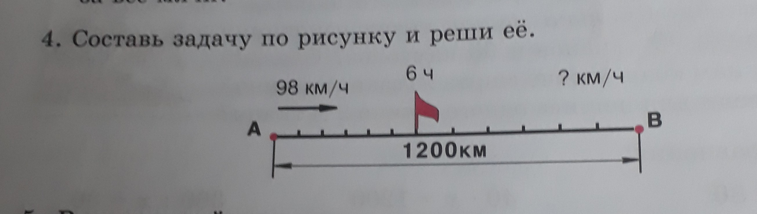Мотоциклист двигался из пункта А в пункт В со скоростью 98 км/ч первые 6 часов пути. Расстояние между пунктами 1200 км. С какой скоростью двигался мотоциклист после шестого часа в пути?