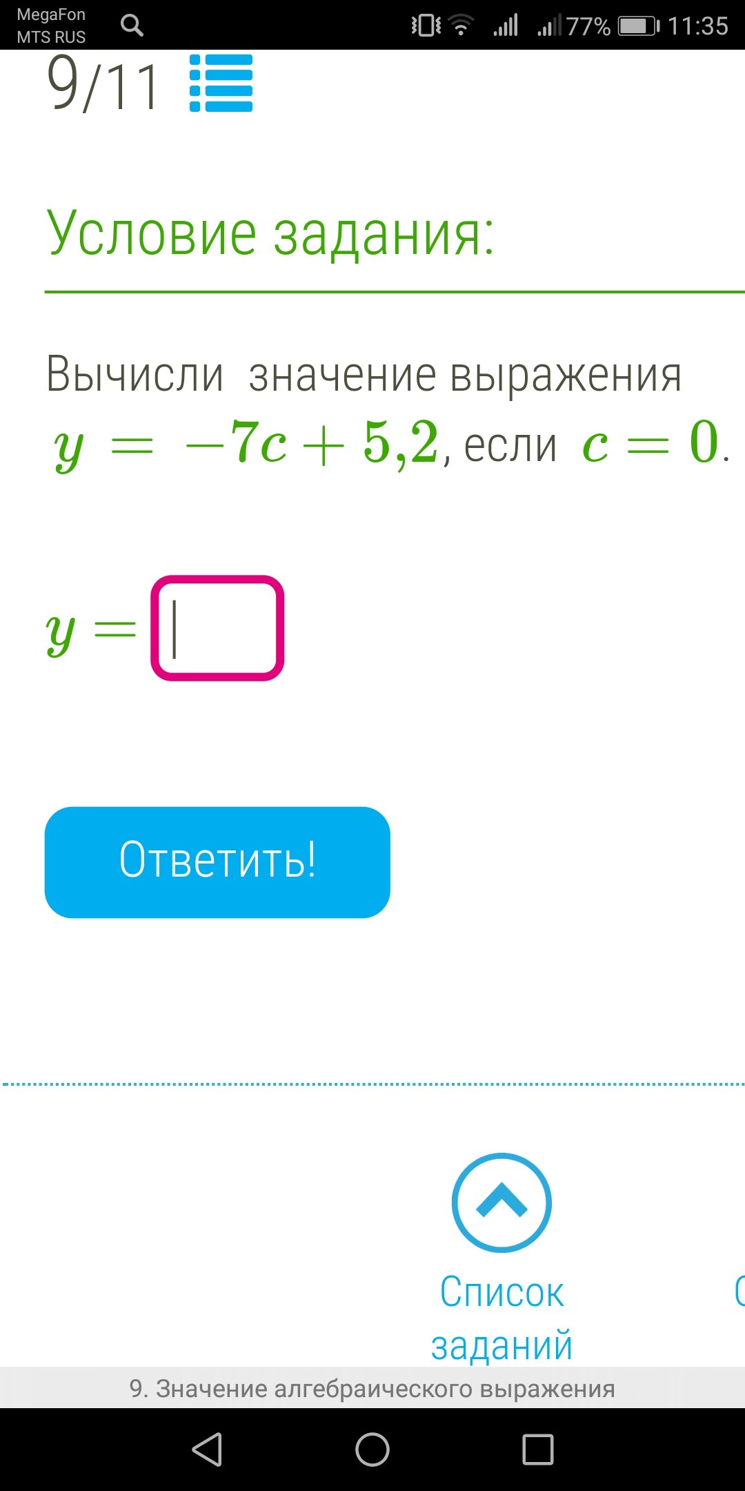 у=-7*0+5,2=5,2