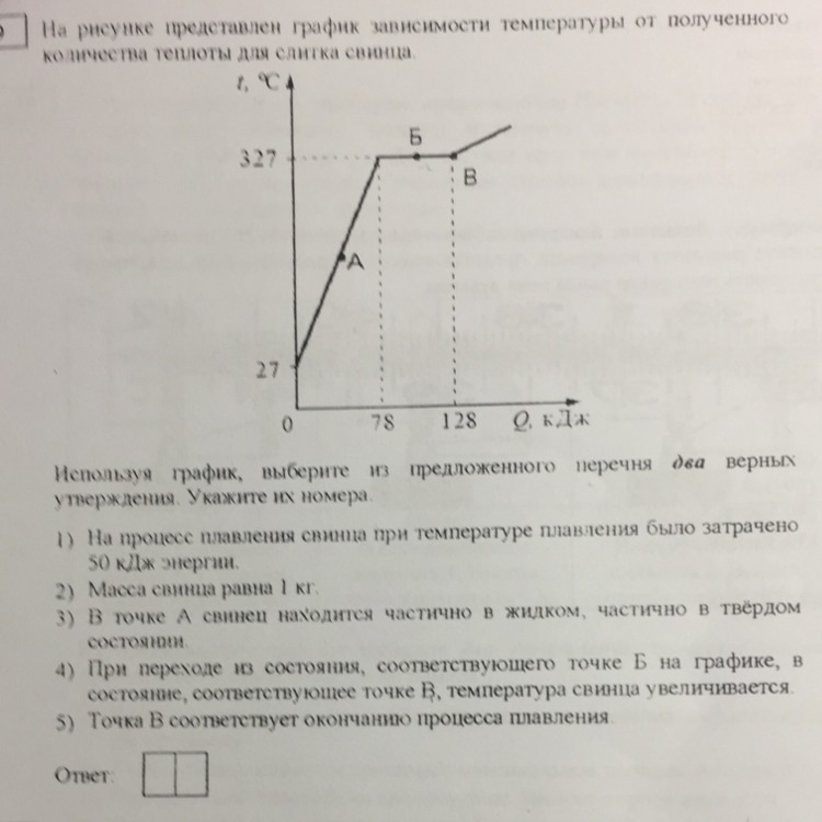 1,5 При плавлении температура не меняется на графике от 78 кДж до 128 кДж