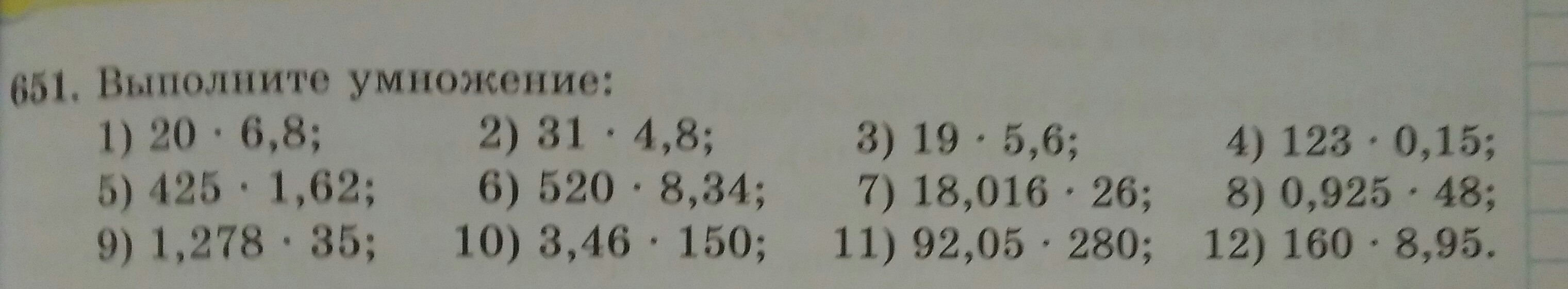 1)136 2)148,8 3)106,4 4)18,45 5)688,5 6)4336,8 7)468,416 8)44,4 9)44,73 10)519 11)25774 12)1432