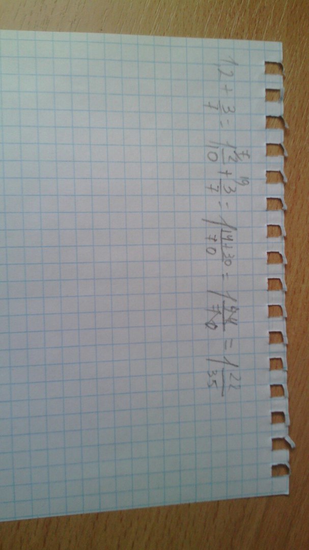 1,2+3/7=1 1/5+3/7=1 7/35+15/35=1 22/35