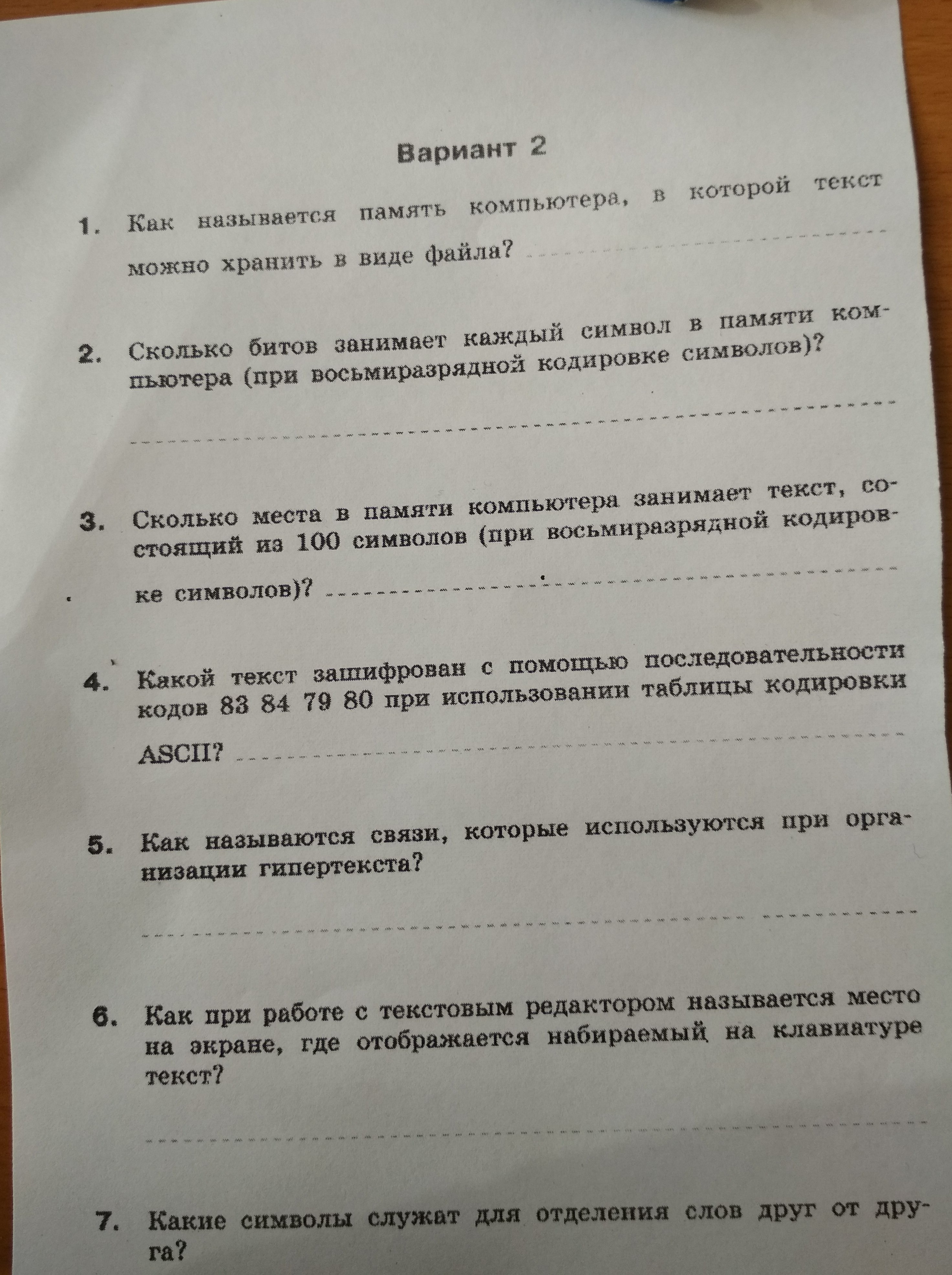 7) Символ для отделения слова от другого слова: Space (Пробел)