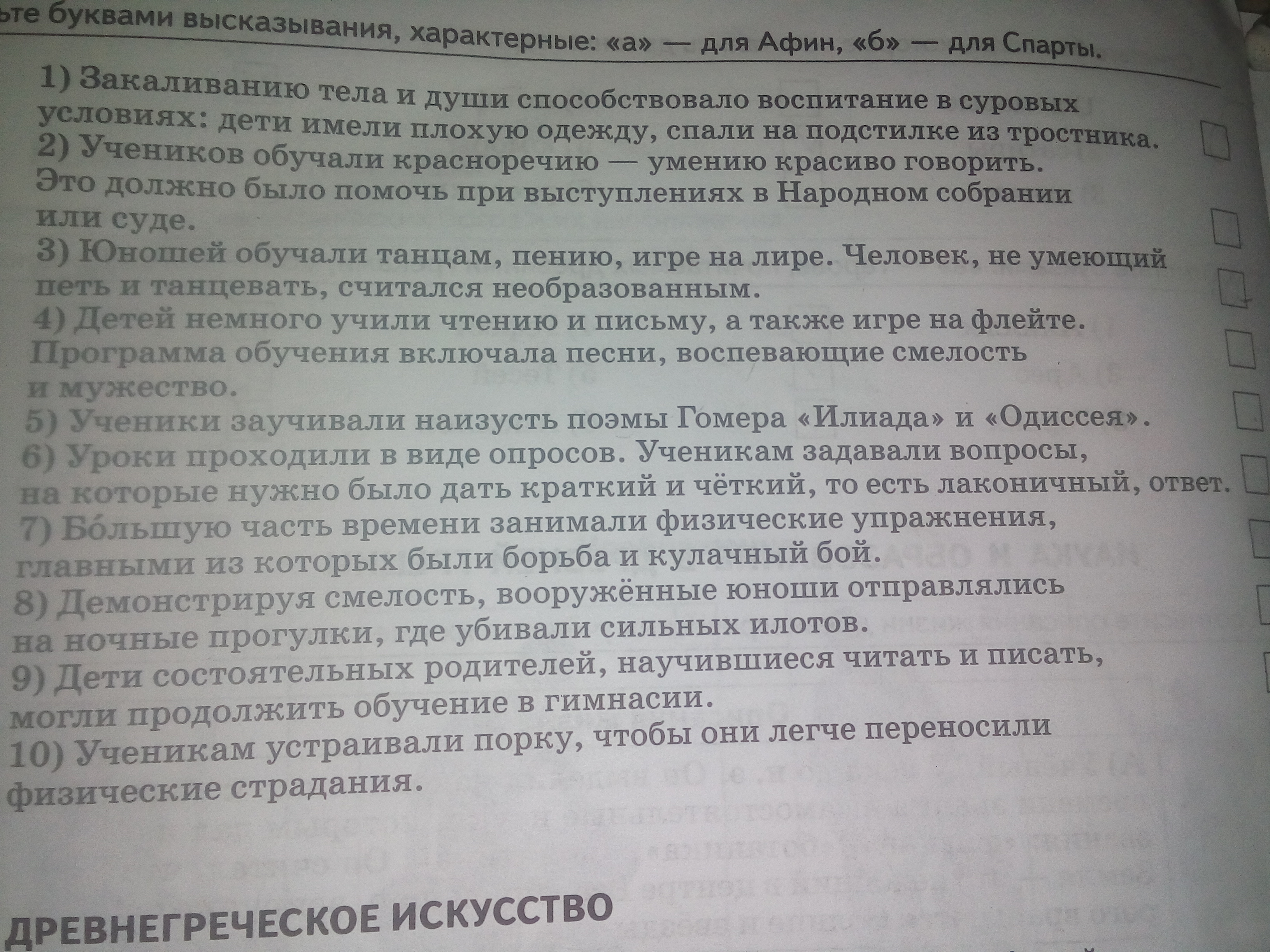 Отметьте буквами высказывания, характерные: <<а>> - для Афин, <<б>> - для Спарты