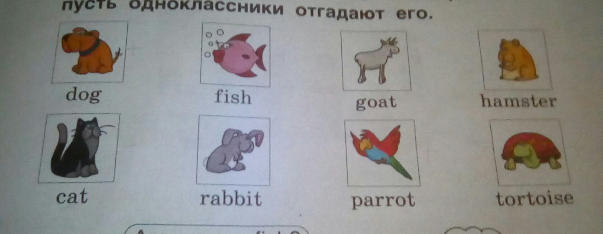 dog собака дог fish рыба транскрипция фиш goat козёл транскрипция гоат hamster хомяк транскрипция хамстер cat кошка трансрипция кет parrot папугай транскрипция перот tortoise черепаха транскрипция тортайелс