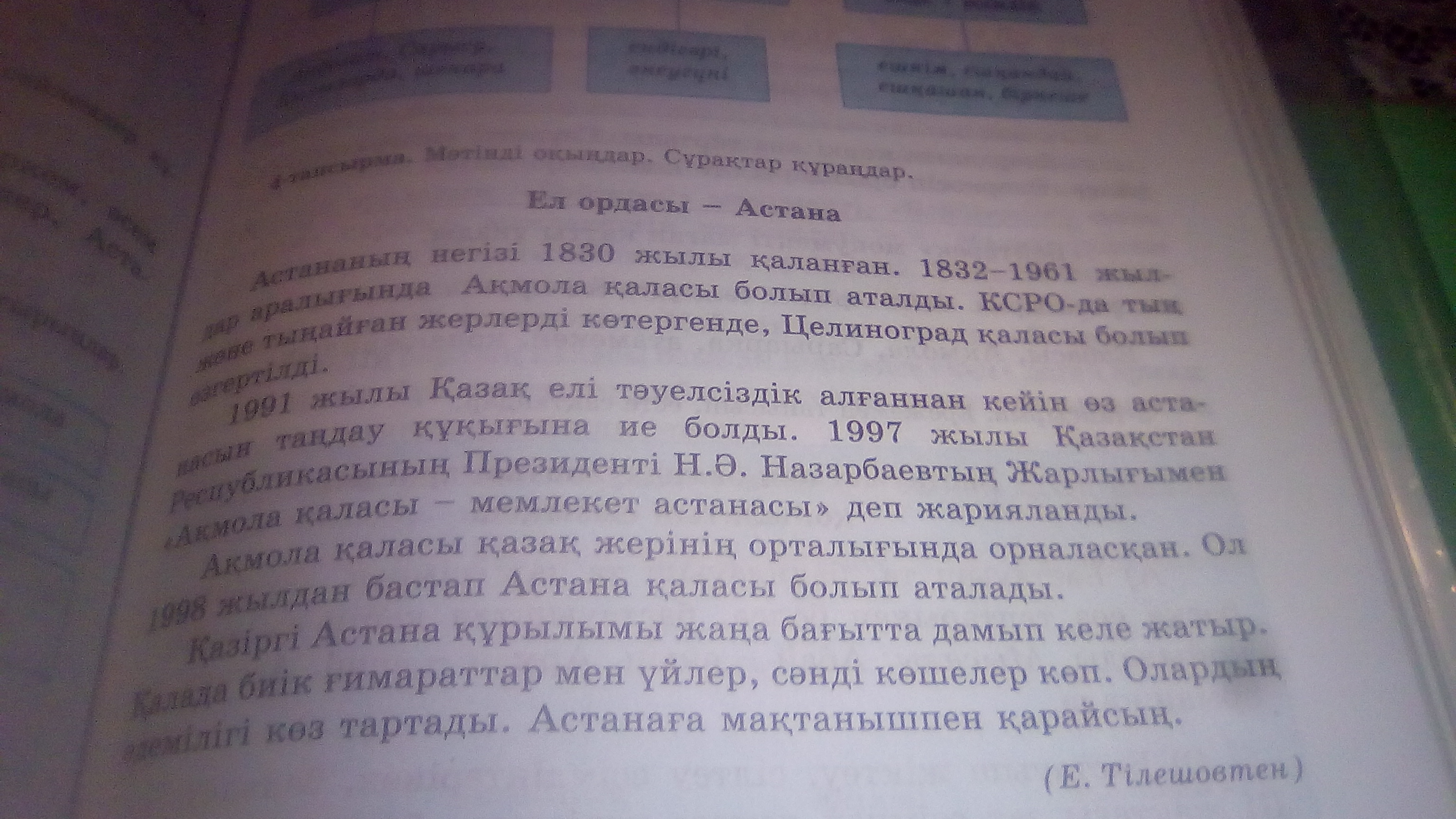 5) Сен Астана қаласын көрдің бе? Қала ұнады ма?