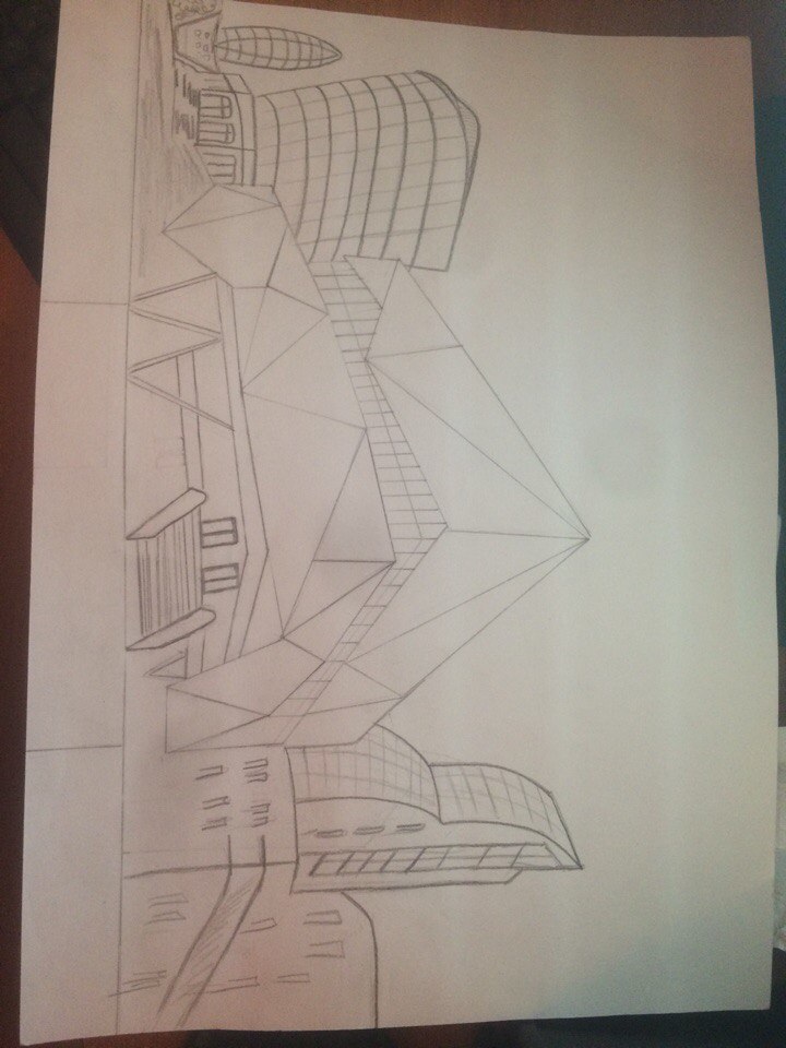 Я нарисовала этот рисунок сама. На нём изображён современный город который я хотела увидеть у нас в будущем. На нём изображены разные дома как я представляю их в будущем. Надеюсь он вам понравился.