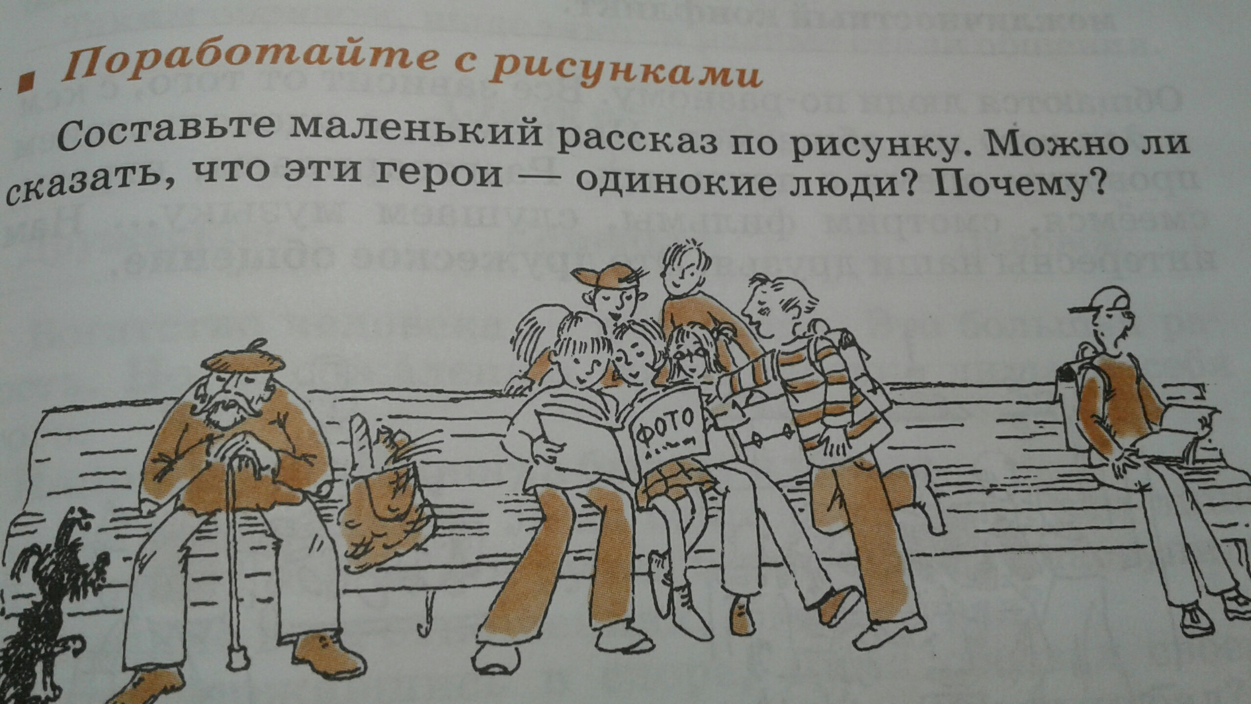 Я считаю ,что все герои разные ! Потому что дети рассматривают фото альбом и смеются ,а мальчик с книжкой сидит отдельно от ник -может быть потому что стесняется или любит одиночество ,но ему очень интересно 'почему ребята смеются ?'А дедушка возможно решил отдохнуть и ему не интересно ,что смотрят ребята и над чем смеются-он просто сидит на лавочки с собачкой!