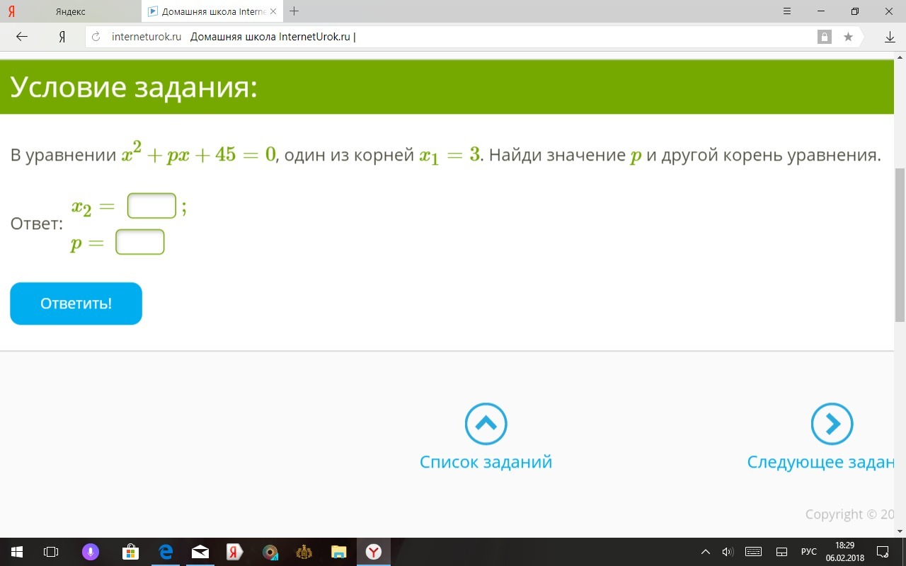 x₁+x₂=-p ⇒ x₂ =18-3 =15.