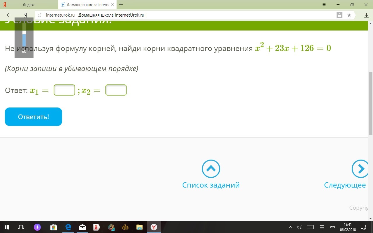 D = 23² - 4 * 1 * 126 = 529 - 504 = 25 = 5²