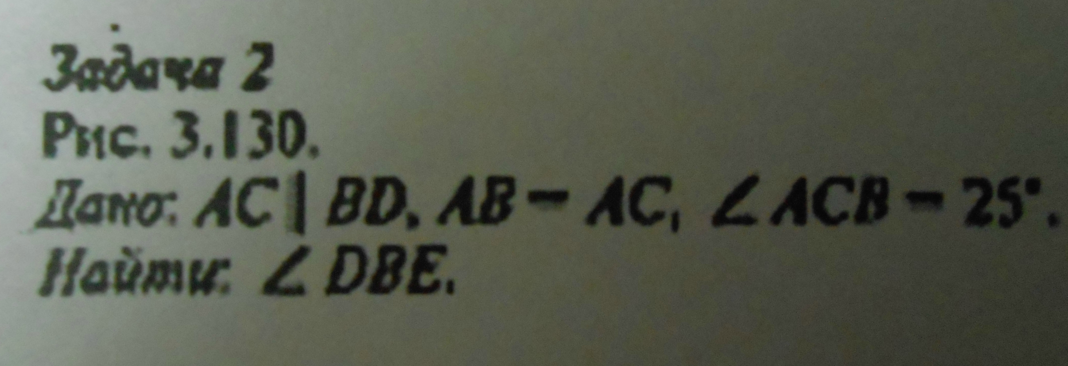прямая AC паралельна BD, следовательно угол ACB равен углу CBD, а т.к. AB=AC. Треугольник BAC равнобедренный, угол ABC равен углу ACB равен углу CBD .Тогда угол ABD: 25+25=50, следовательно угол DBE равен 180-50=130 градусов.