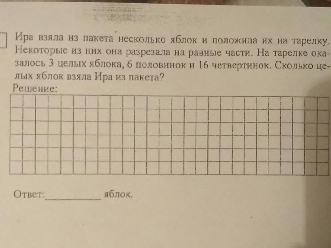 3) 3+3+4=10 целых яблок взяла Ира из пакета