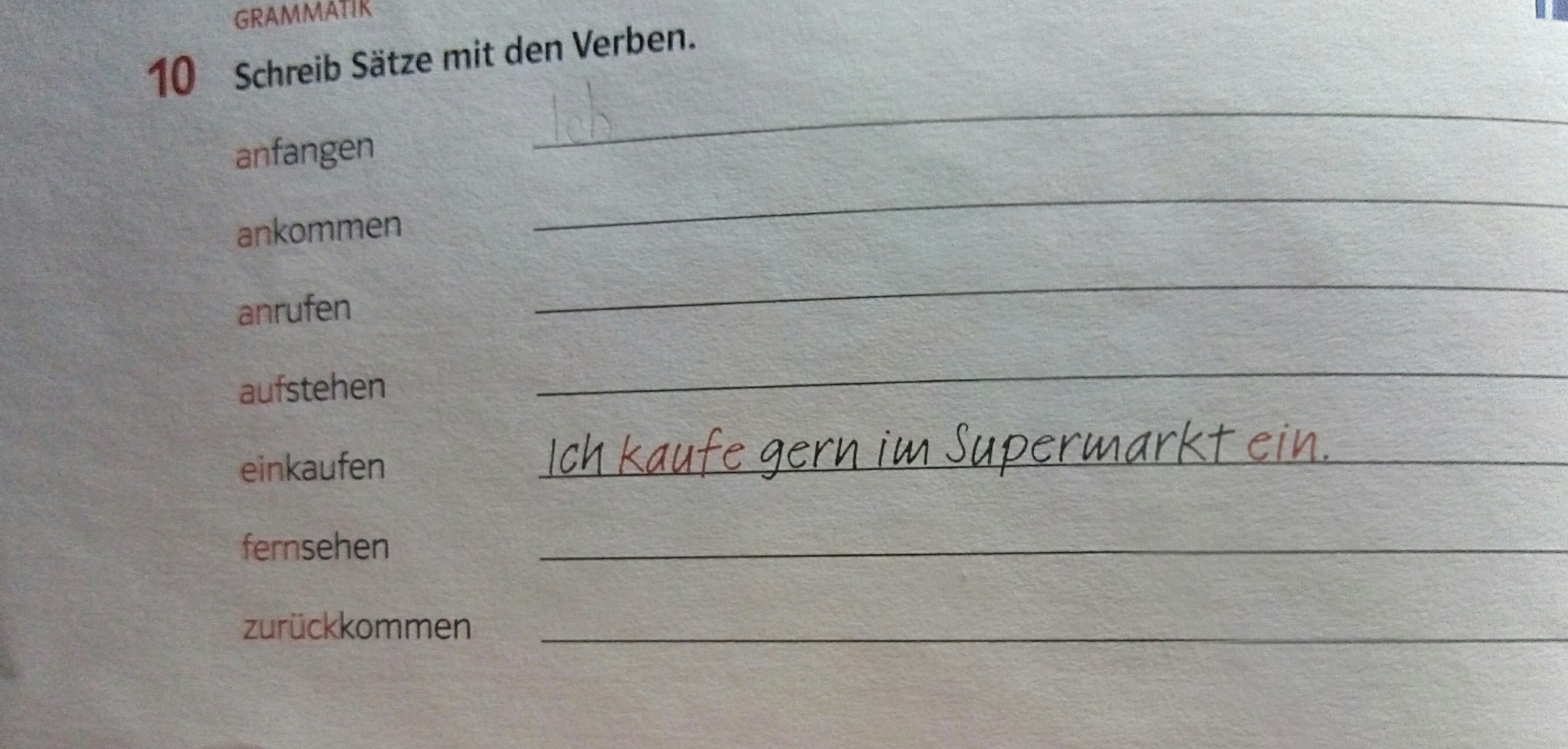 Ich fange mein Tag mit gutem Frühstück an.Der Zug ist angekommen.Ruf mich bitte morgen an. Stehst du gewöhnlich früh auf? Ich sehe nicht so oft fern. Mein Freund ist nach 5 Minuten zurückgekommen