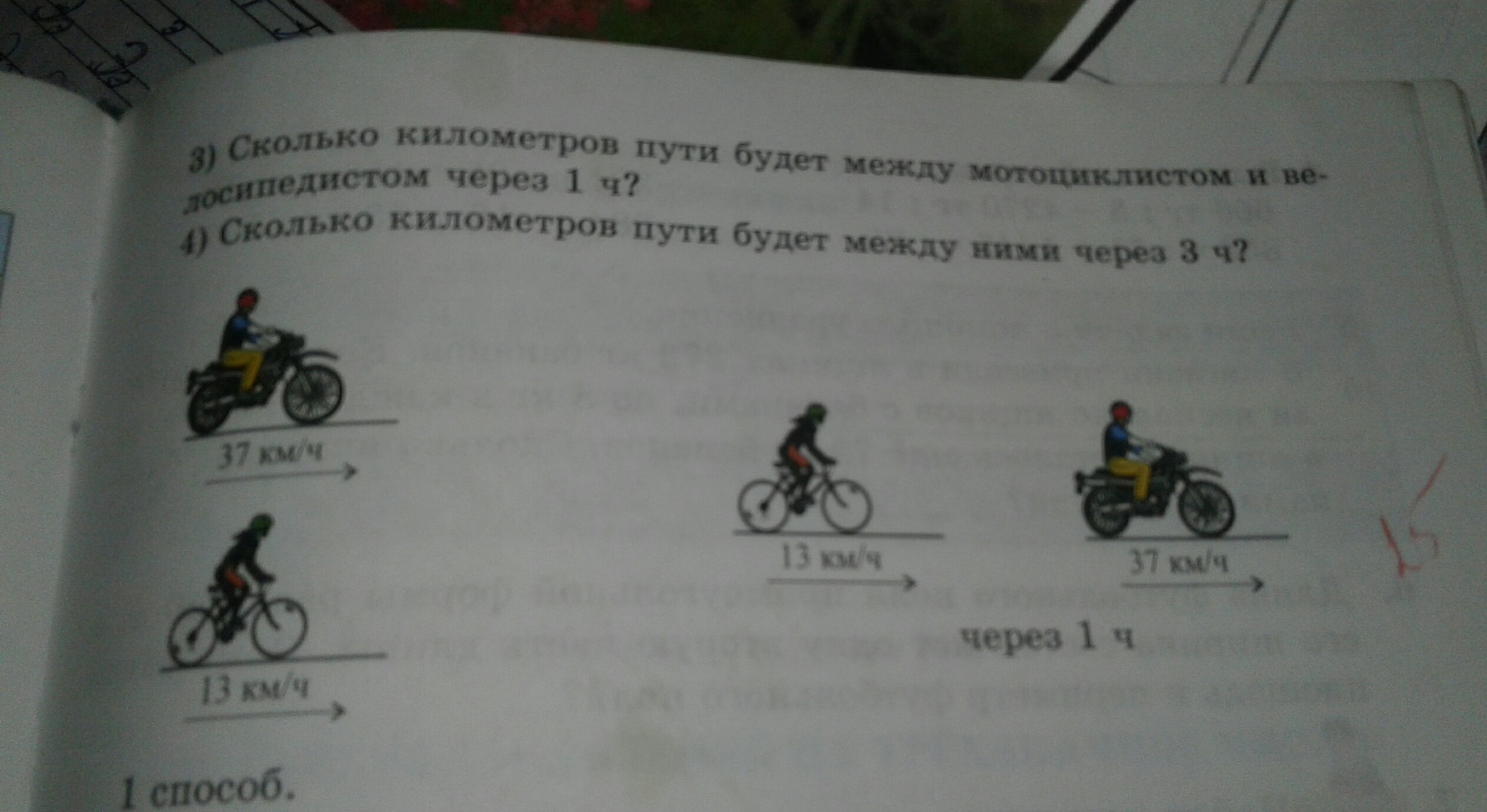 находим через 3 часа: 13*3=39 км( первый мотоцикл за 3 часа)
