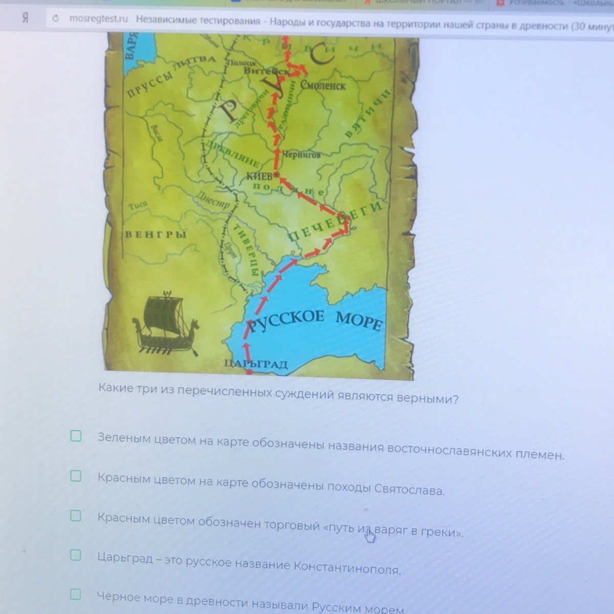 2) Красным цветом обозначен торговый путь "Из Варяг в Греки".