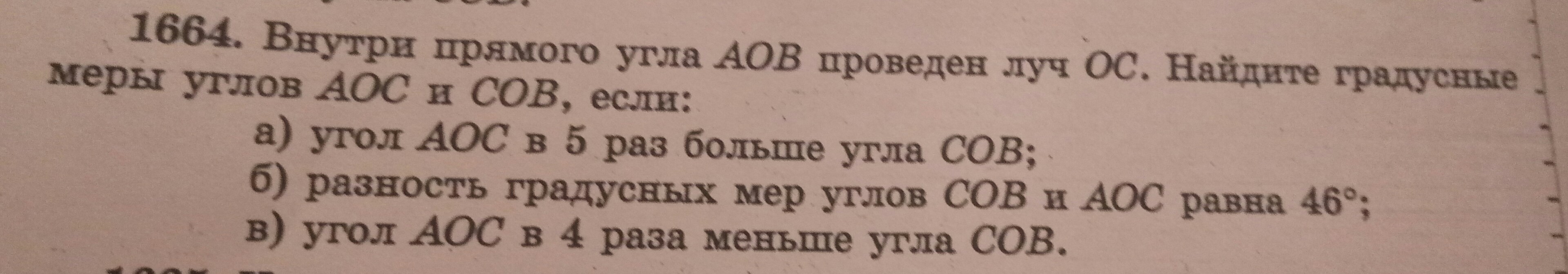 Получается мы делим угол 90° на пять углов АОС, тогда 90°:5=18° - угол АОС, а СОВ=18×4=72°