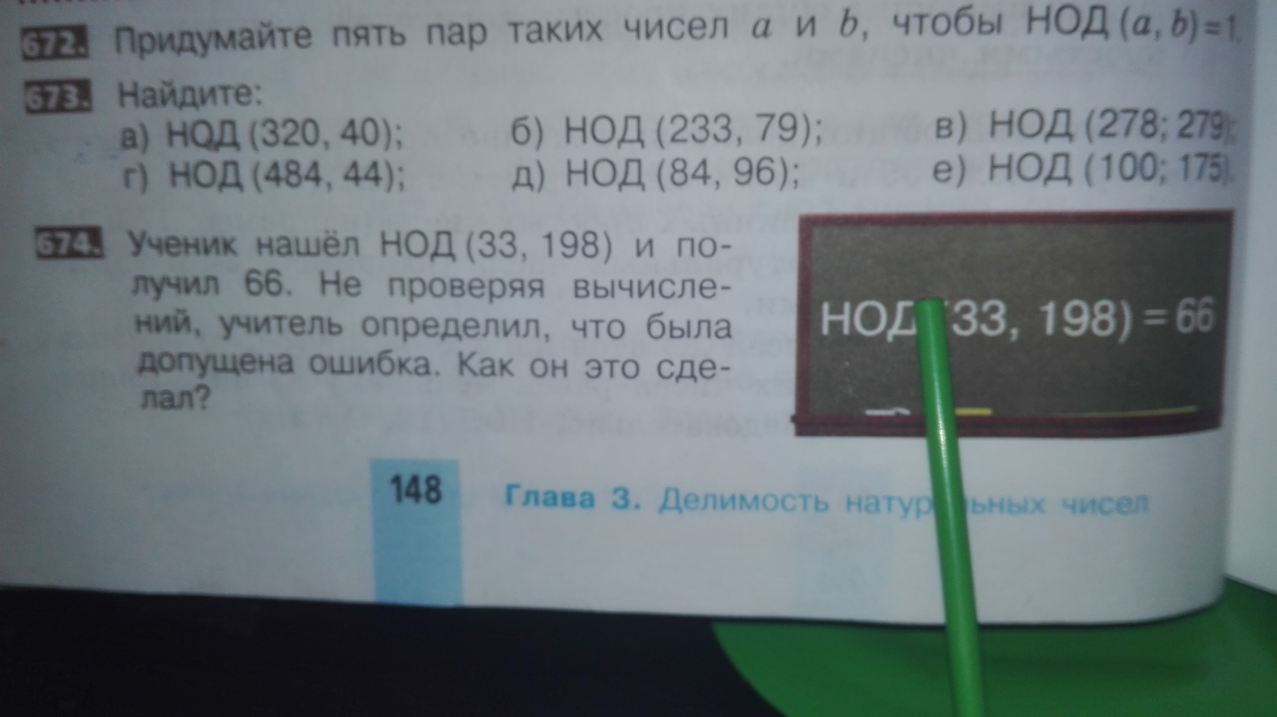 НОД - наибольший общий делитель, а число 33 (делимое) меньше делителя 66. НОД (33, 198) = 33. 33 : 33 = 1; 198 : 33 = 6.