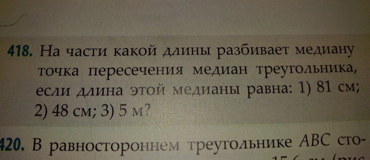 Здравствуйте. Для решения этой задачи вспомните одно свойство, что медиана при разделении делится на части относящиеся 2 к 1. Соотвественно: