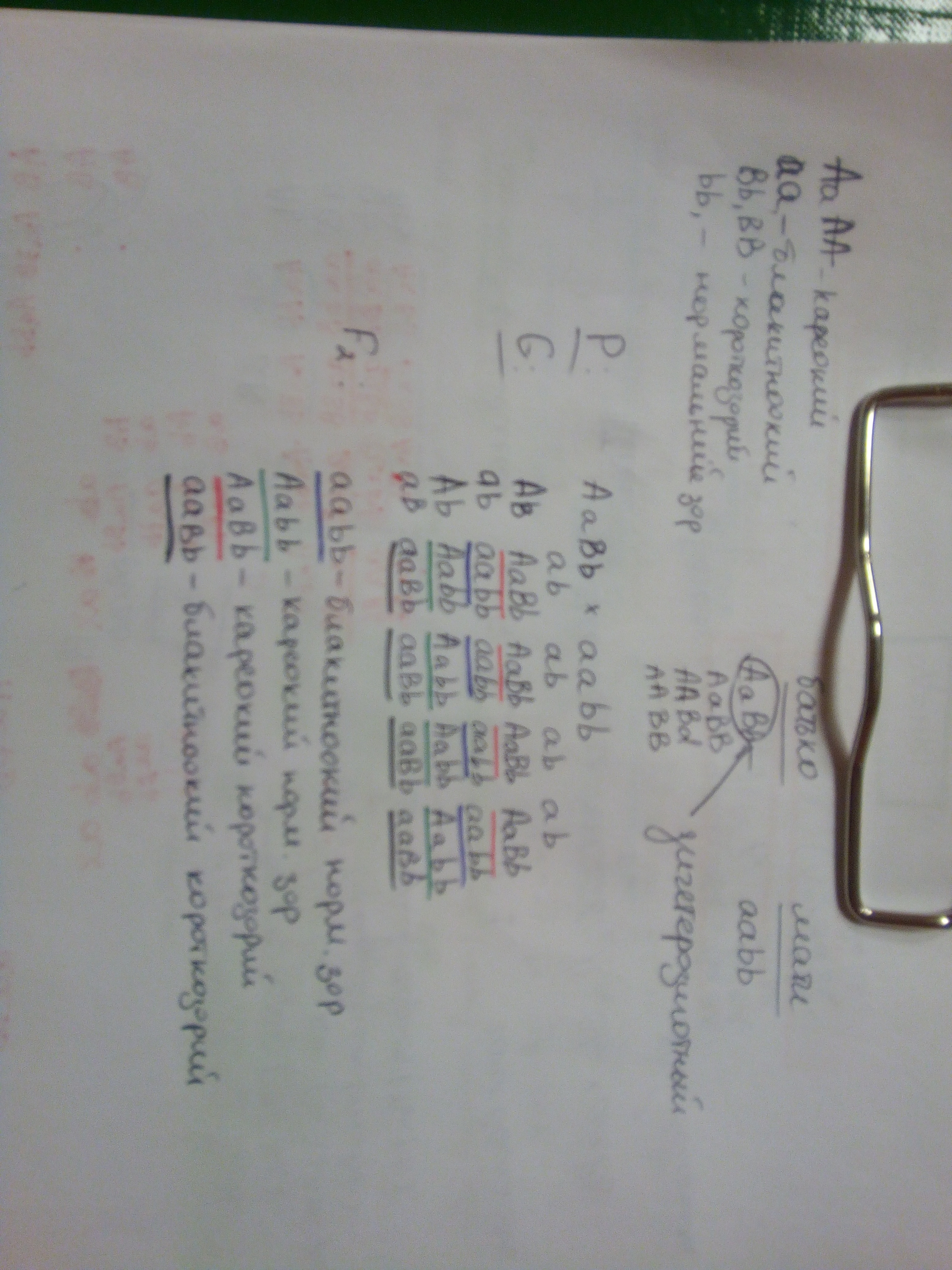 У людини деякі форми короткозорості домінують над нормальним зором, а карі очі - над блакитними. Яке потомство можна чекати від шлюбу між дигетерозиготним карооким і короткозорим чоловіком і блакитноокою жінкою з нормальним зором?