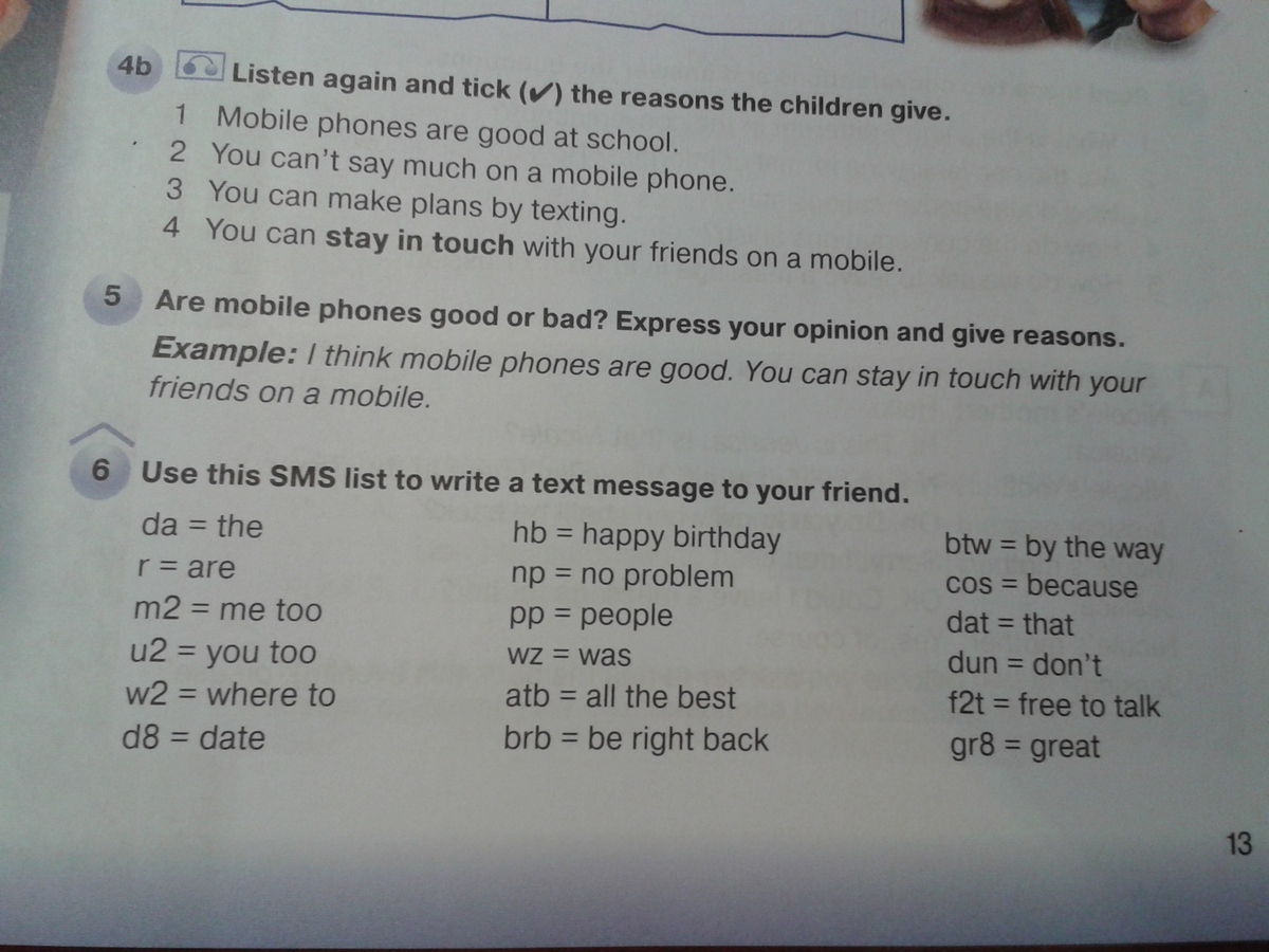 5.I think mobile phones are good because they have alarms, calendars, notes etc.,what is sometimes necessary.You can play games on a mobile phone,access the internet.And,what is important,you can call your friends,family members on mobile phone.