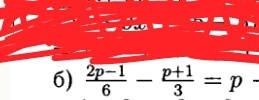 \frac{2p-1}{6}- \frac{p+1}{3}=p\\ \frac{2p-1}{6}*6- \frac{p+1}{3}*6=p*6 \\