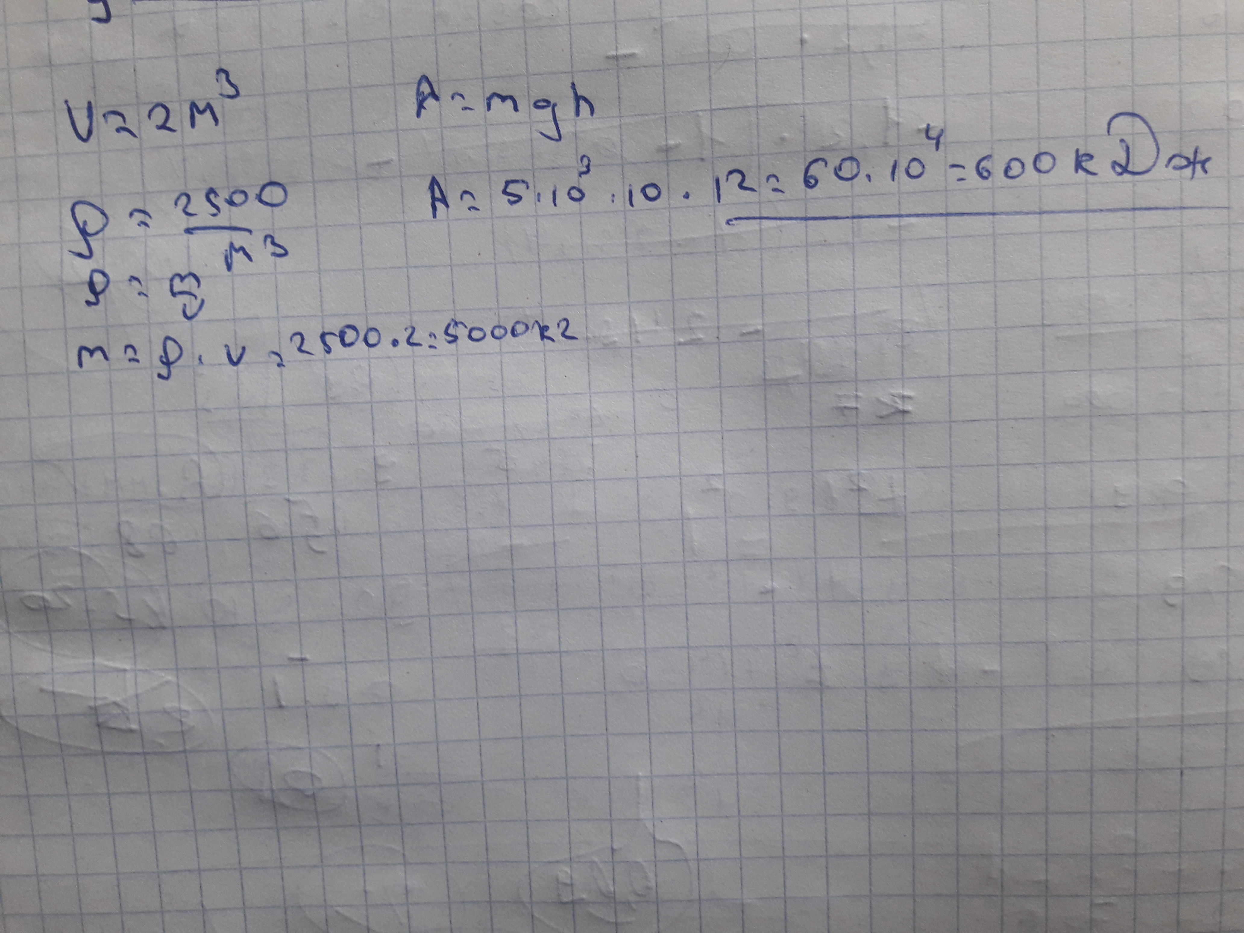 Какая работа совершается при подъеме мраморной плиты объемом 2 м кубических на высоту 12 м плотность мрамора 2500 кг на метр кубический