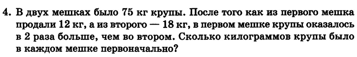 4. 75-12=63кг. 1мешок. 75-18=57. 2мешок , про конфеты 4+8(это сколько конфет они съели вместе)=12