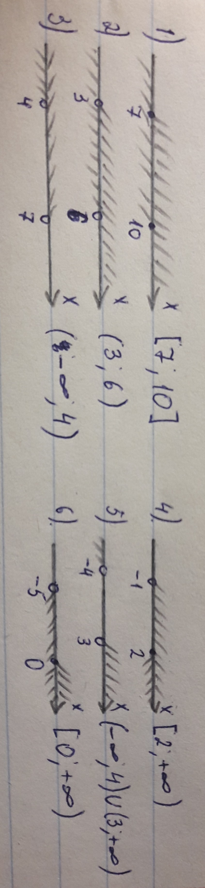 ответ прикреплен на фото. там, где скобка круглая - точки не закрашенные