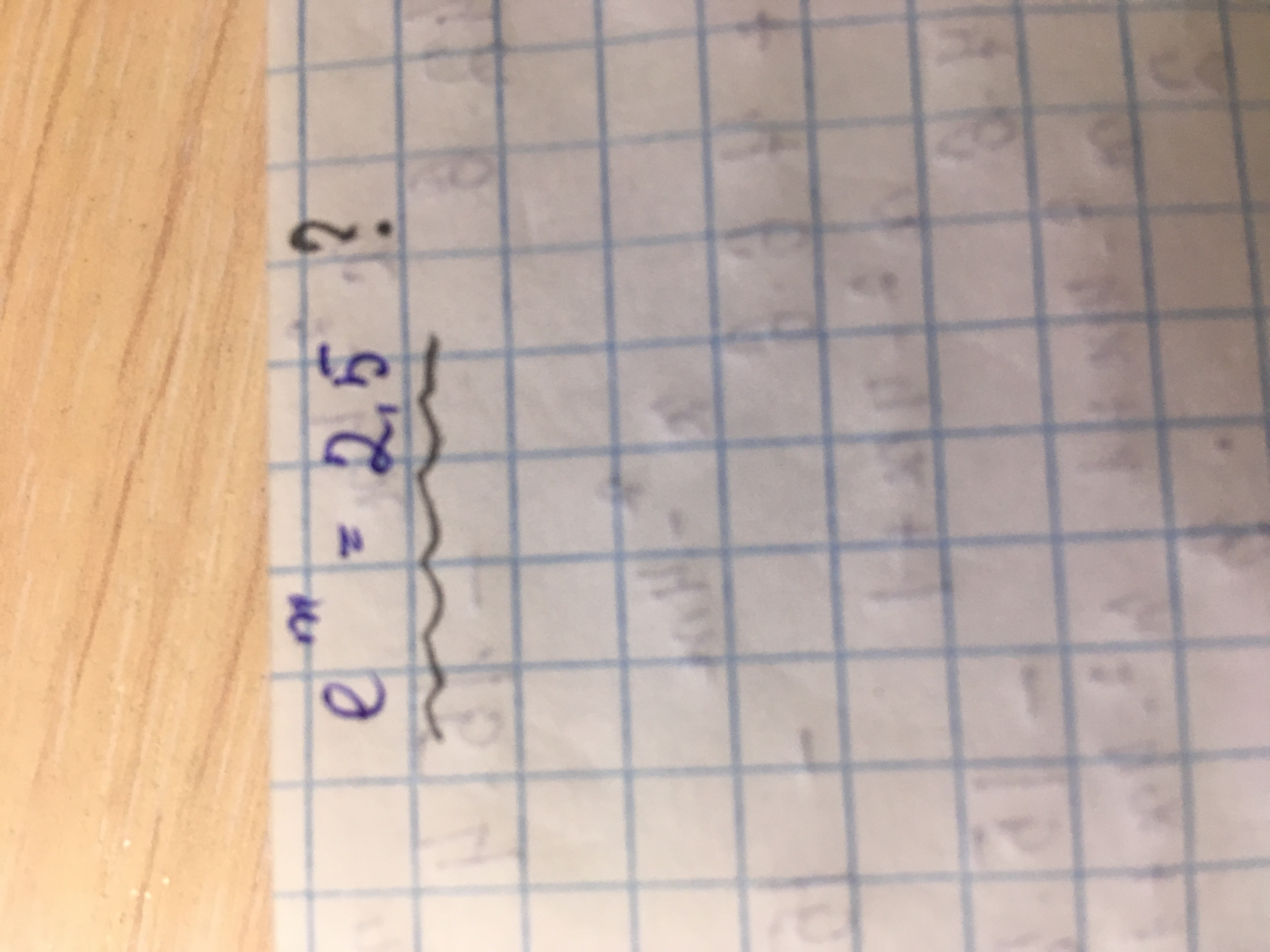 Показательное уравнение. Логарифмируем обе части уравнения получаем: x=ln(2,5)