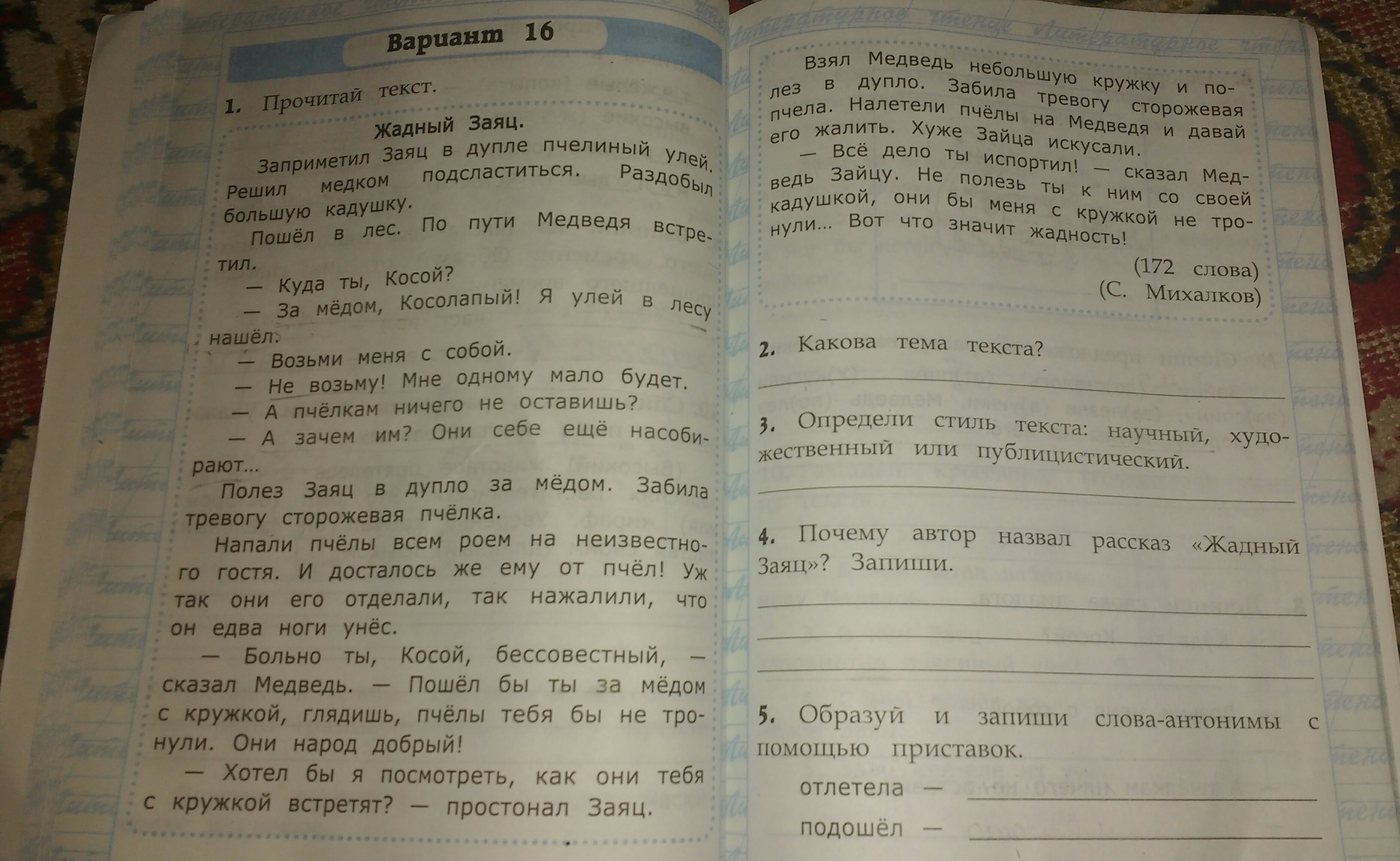 4. Автор так назвал текст мз- за жадности зайца. Если бы косой поделился медом, то никто бы не пострадал