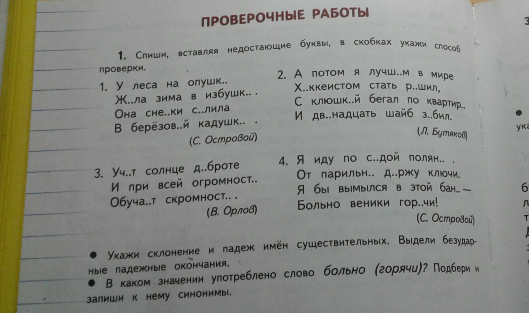 Спиши вставляя недостающие буквы в скобках укажи способ проверки укажи склонение и падеж существительных Выдели безударные падежные окончания в каждом значении употреблено слово больно горячи подбери и запиши к нему синонимы