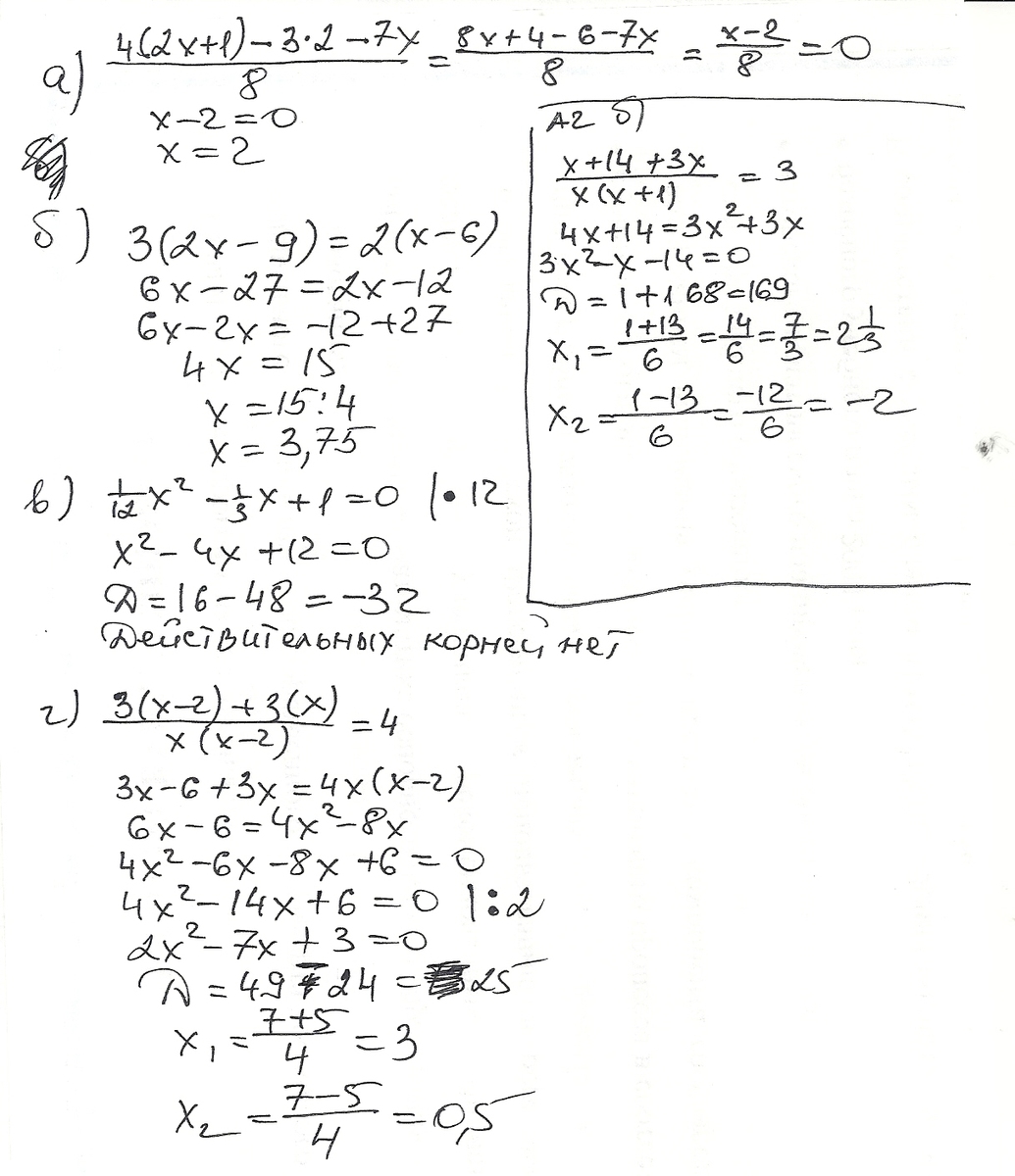 а) избавься от дробей путём умножения этих дробей на общее число, чтобы ушли дроби, это число 8.