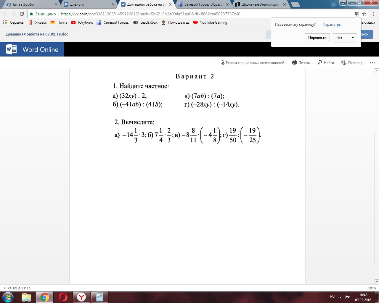 а) -14 x 1/3 x 3 (сокращаем 3 у дроби и у множителя и получаем -14 x 1) = -14. б) 7 x 1/4 x 2/3 (сокращаем дроби) 7 x 1/2 x 1/3 = 7/6 (1 1/6). в) -8 x 8/11 x (-4 x 1/8) (сокращаем дроби) -8 x 8/11 x (-1/2) (Сокращаем дроби и вычисляем) 4 x 8/11 = 32/11 ( 2 10/11). г) 19/50 x (-19/25) (делим) -19/50 x 25/19 (сокращаем дроби) = -1/2 (-0.5).