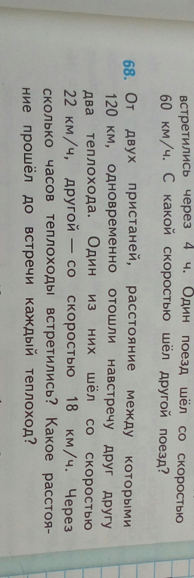 Ответ: встреча состоялась через 3 часа; первый прошел 66 км; второй прошел 54 км.