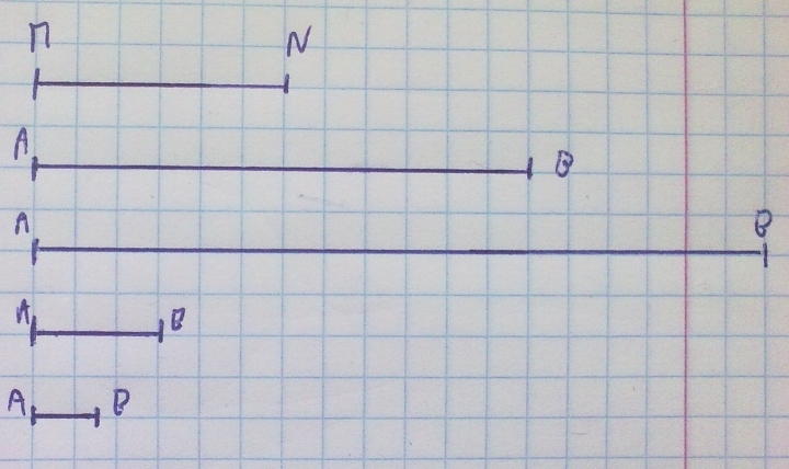 Отрезок MN имеет длину х см. Начертите отрезок АВ, лина которого равна: а) 2х см, б) 3х см, в) х:2 см, г)х:4 см