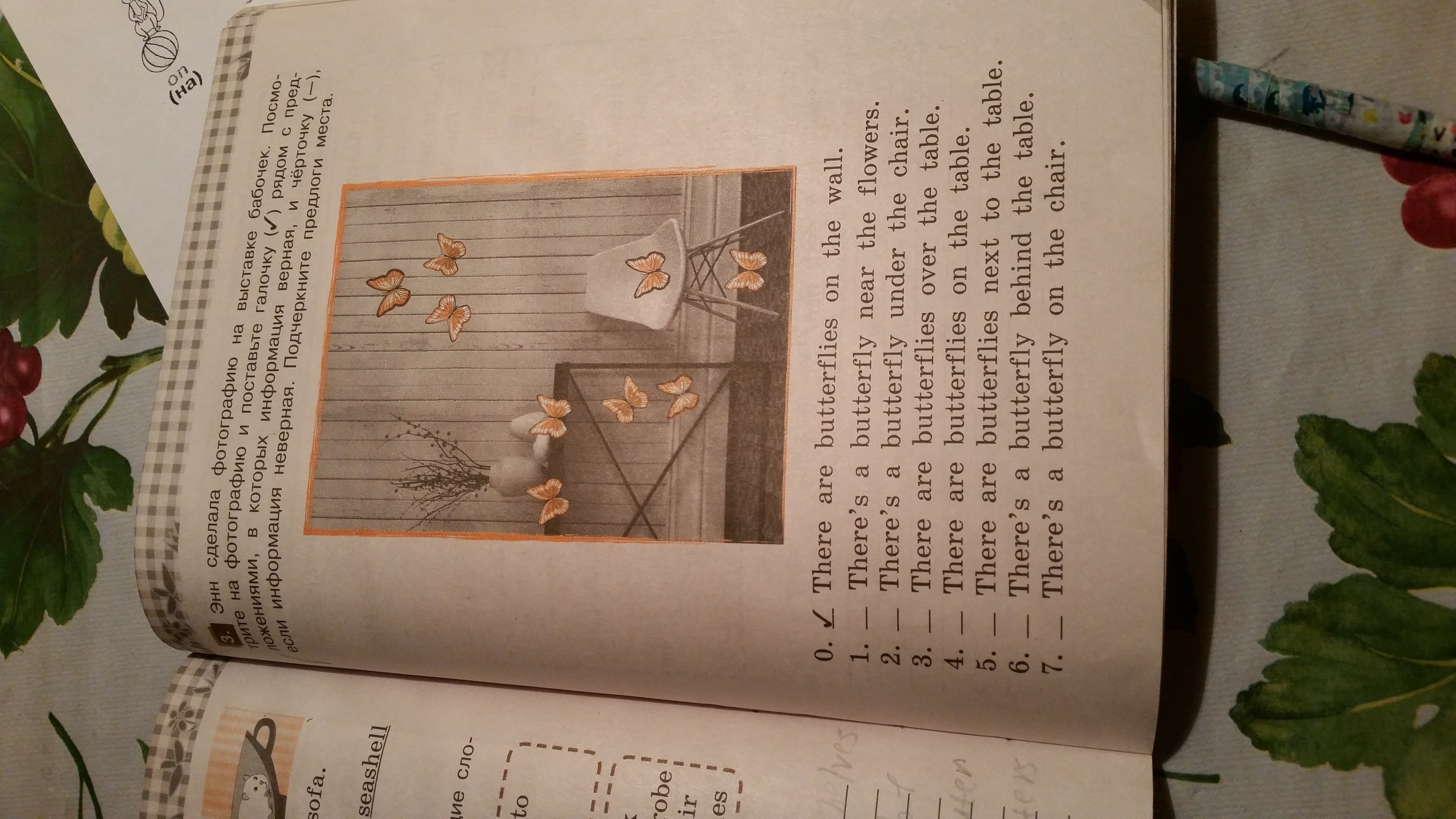 Правильные предл. 2, 4, 7. Предлоги места: on, near, under, over, on, next to, behind, on.