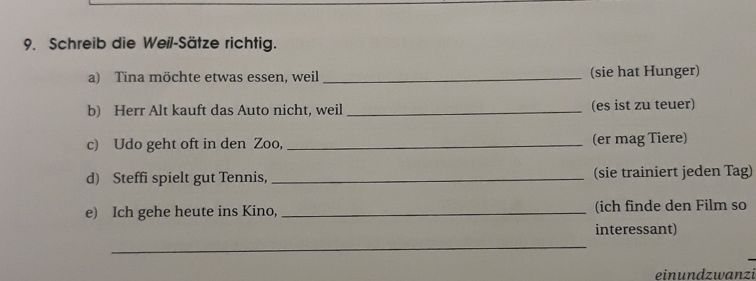 e) Ich gehe heute ins Kino, weil ich den Film so interessant finde.