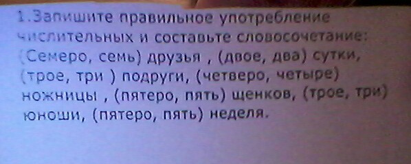 семеро друзей,двое суток,три подруги,четверо ножниц,пять щенков,три юноши,пять недель.