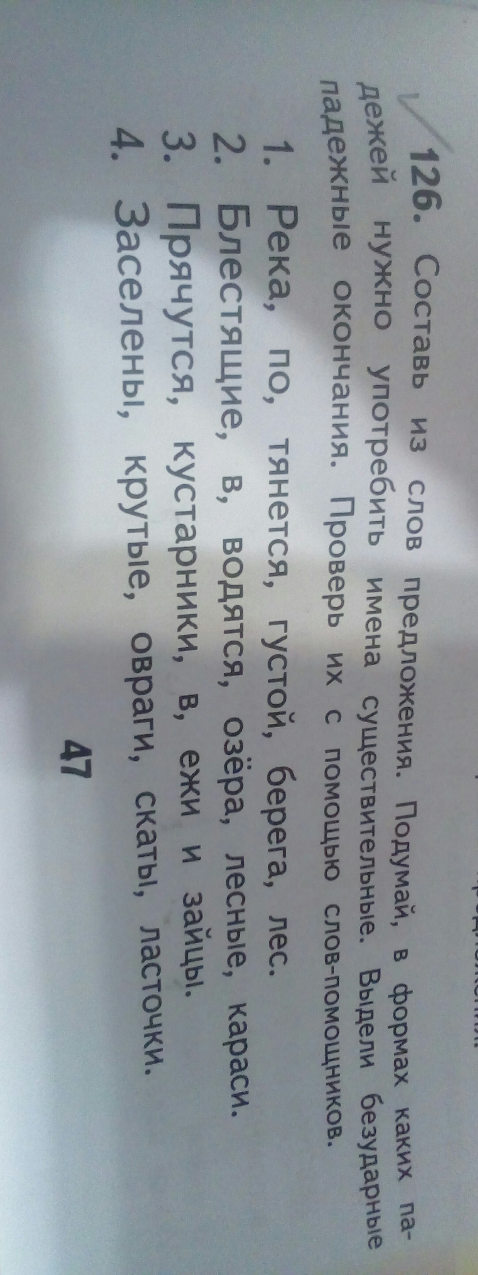 слов предложения подумай в формах каких падежей нужно употребить имена существительные Выдели безударные падежные окончания примеры их с помощью слов помощников
