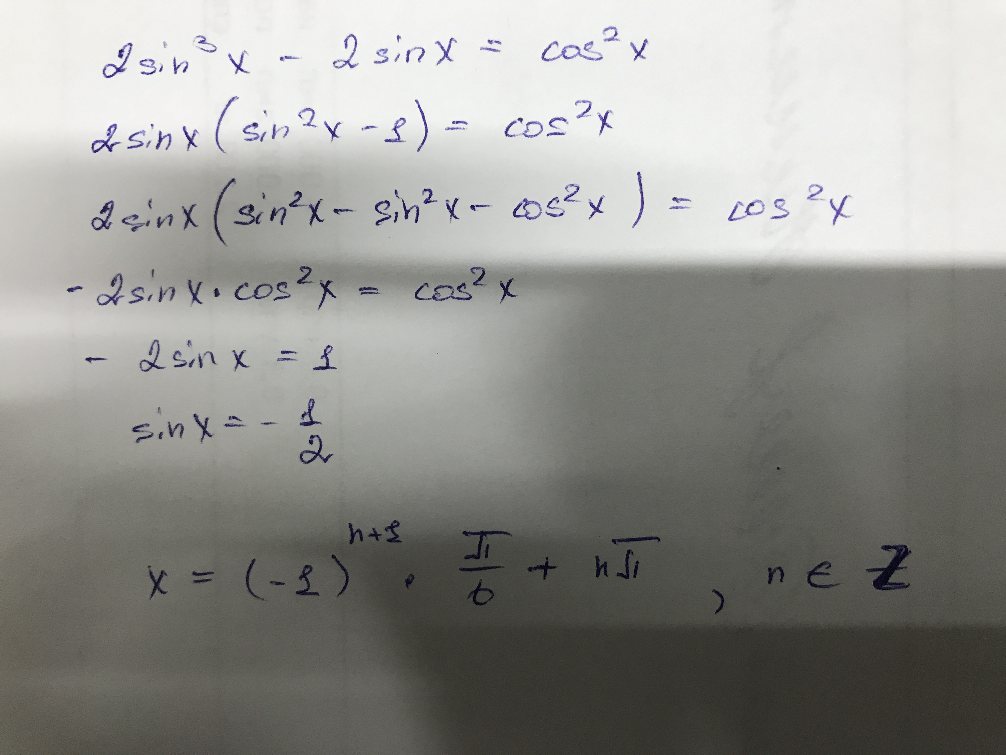 2sinx(sin^2x-1)=cos^2x